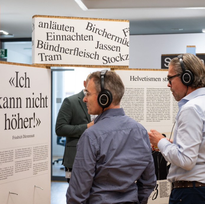 Réalisée par le Centre Dürrenmatt Neuchâtel, en collaboration avec le Forum Helveticum et avec le soutien du Centre de dialectologie et d’étude du français régional de l’Université de Neuchâtel, du Forum du bilinguisme, de l’Osservatorio linguistico della Svizzera italiana et du Schweizerischer Verein für die deutsche Sprache, l’exposition itinérante «Helvétismes – Spécialités linguistiques» a été montrée avec succès au Centre Dürrenmatt Neuchâtel du 14 avril au 21 juillet 2019.